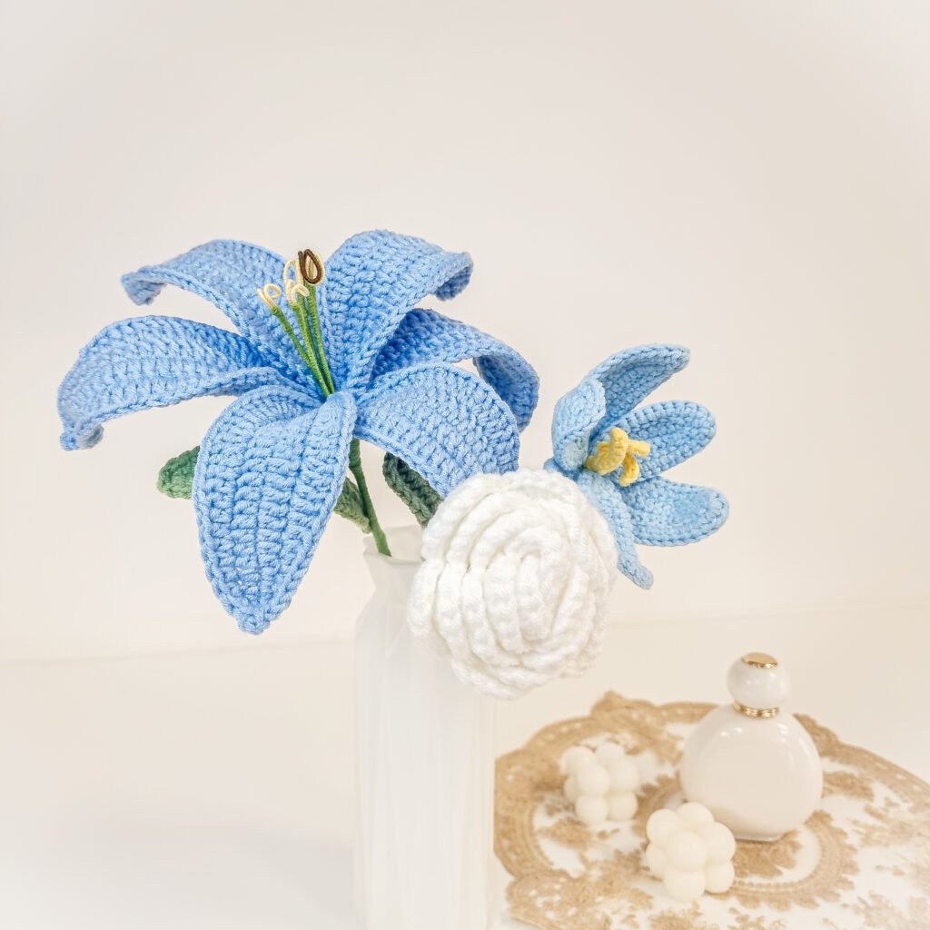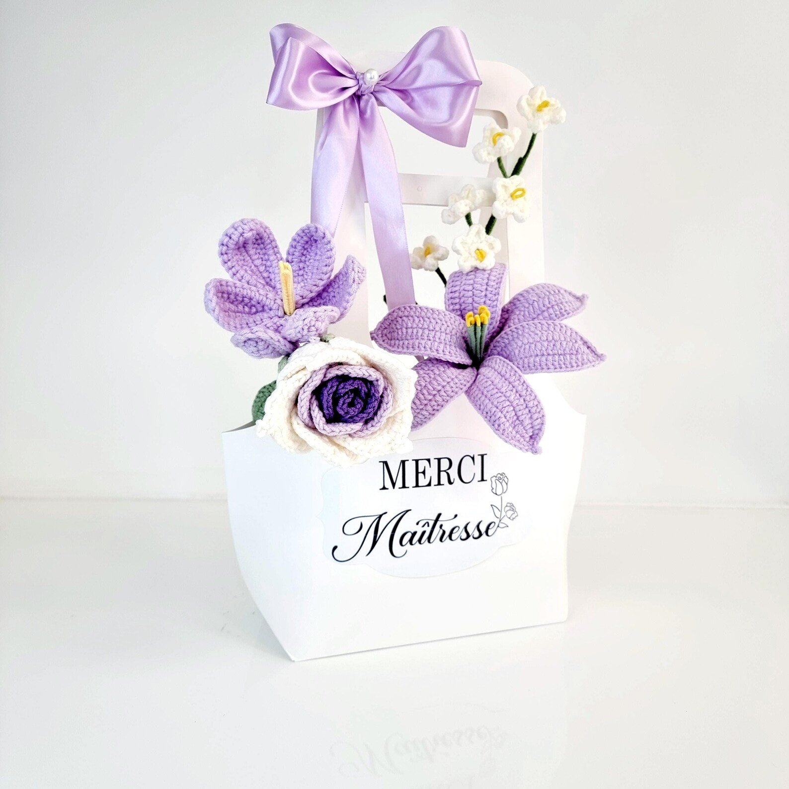 Bouquets au crochet durables, réalisés à la main. Idéals pour cadeaux, mariages et décoration.